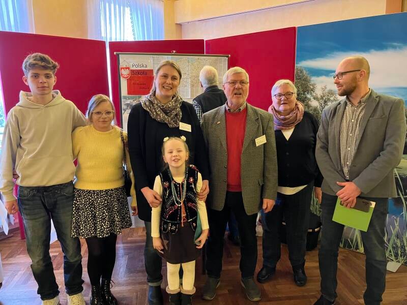 Von links die Lehrkräfte der kleinen polnischen Schule, der Generalkonsul, seine Vertreterin und der 2.Vorsitzende der DPG Refion Schleswig e.V.